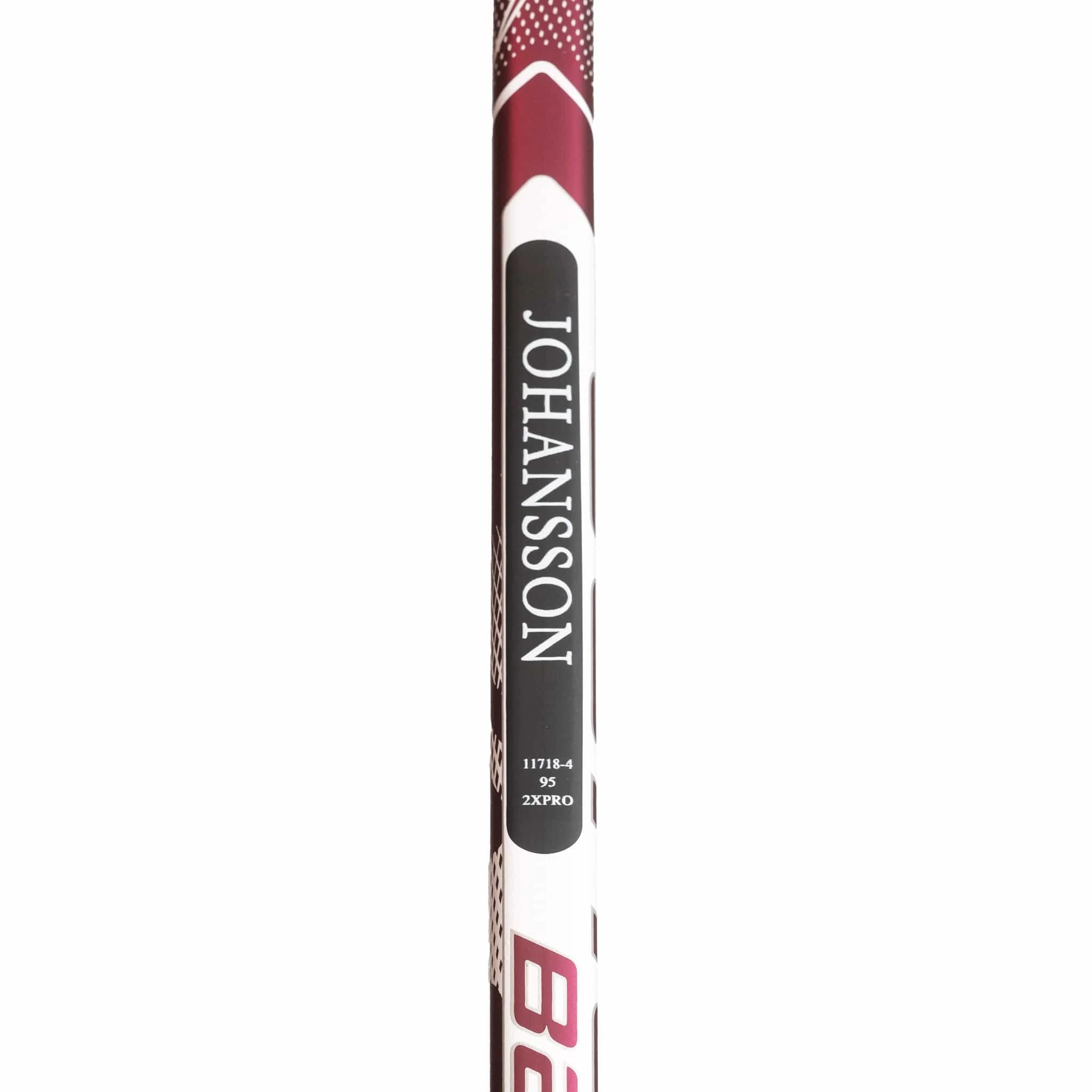 This custom Bauer Vapor Hyperlite goal stick is a pro return from NHL goalie Jonas Johansson. It has been outfitted with a Hyperlite graphic over a Vapor 2X Pro construction. Pro stock goalie sticks possess curves for the goalie they were designed for; the Johansson curve is similar to a Bauer P30 curve with a round toe.