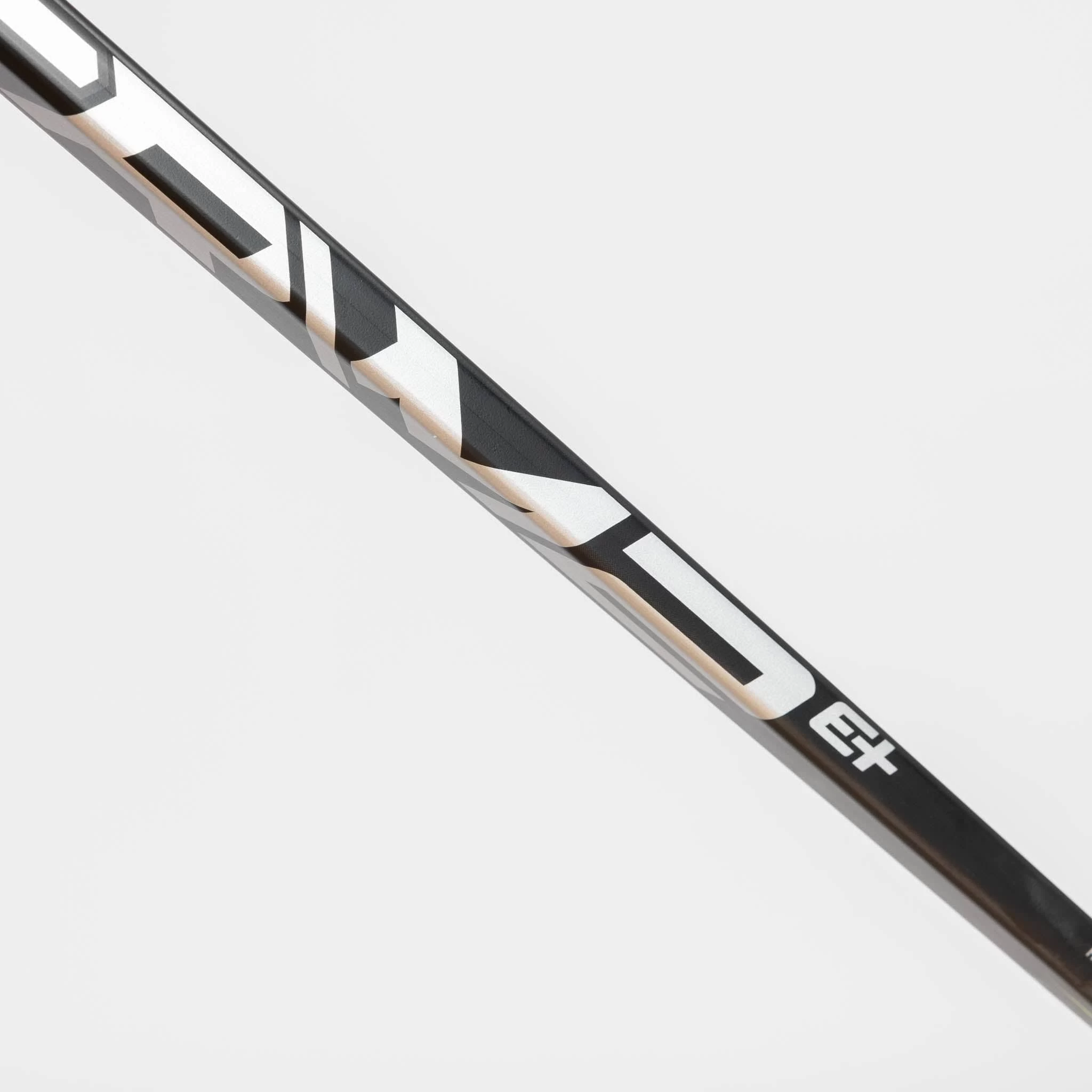 The stick features SureGrip technology at the top of the paddle for better hold and control with the stick. It is textured on the E+, improving feel and quickening grip transition as needed.